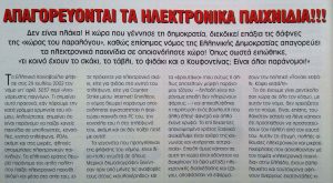 Ακολουθούν αποσπάσματα και εικόνες από τεύχος του περιοδικού Games εκείνη την εποχή, σχετικά με το θέμα.
