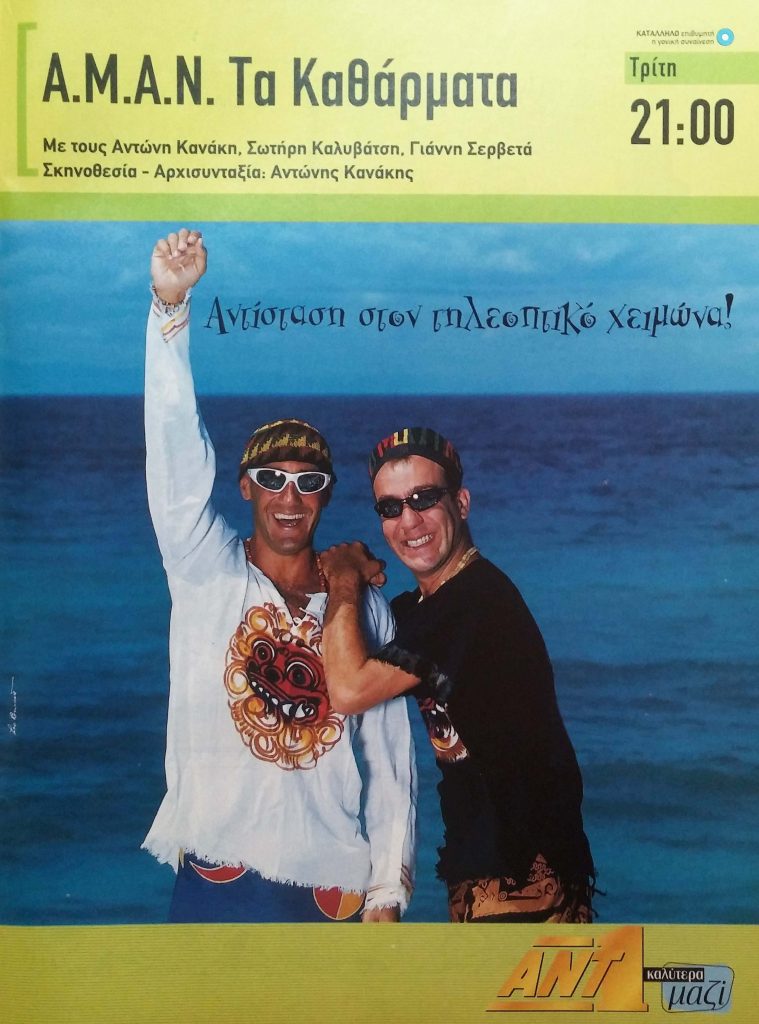 Οι τηλεοπτικοί ΑΜΑΝ που ξεκίνησαν την επιτυχία τους στα 90’s, συνέχισαν να μας προσφέρουν αφθονο γέλιο και στα 00’s μέχρι και το 2007, οπου προβλήθηκε και το τελευταίο επεισόδιο της ιστορικής εκπομπής τους. Ήταν κάτι συνηθισμένο εκείνον τον καιρό, οι ατάκες και τα αστεία τους να αποτελούν την επόμενη ημέρα κύριο θέμα συζήτησης στο προαύλιο του σχολείου και όχι μόνο. Χαρακτηριστικό παράδειγμα τα σκετς τους με το προεκλόγικο σλόγκαν της Ν.Δ. «Υπάρχει καλύτερη ελλάδα και την θέλουμε», που διατηρούν μέχρι σήμερα εξέχουσα θέση στο πάνθεον της σατιρικής τηλεόρασης.