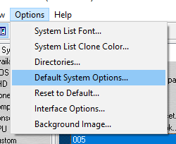 Πάμε στα Options και πατάμε Default System Options.