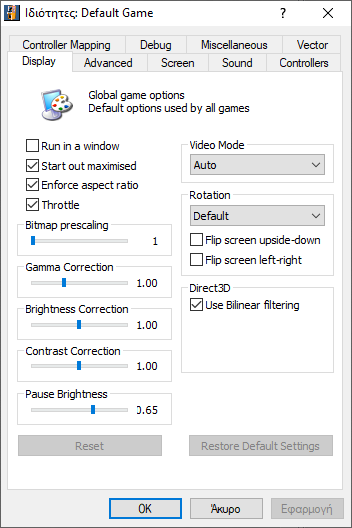 Τσεκάρουμε το Run in a window και ξετσεκάρουμε το Use Bilinear filtering όπως δείχνω στην επόμενη εικόνα.