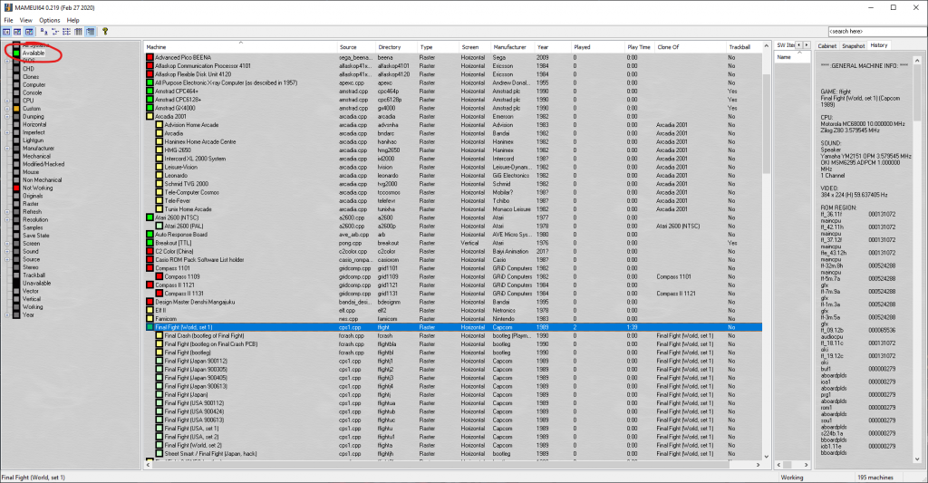Αφού καταφέραμε να φτάσουμε εδώ ανοίγουμε με διπλό κλικ ένα παιχνίδι από την κεντρική λίστα. Στο παράδειγμά μου έβαλα το Final Fight.