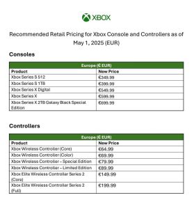 Update: επίσημα πλέον αύξηση των τιμών. Τα games πάνε 90 ευρώ από τον Νοέμβριο και μετά. Το Xbox Series X 2TB ακριβότερο και από το PS5 Pro σε χώρες όπως οι Η.Π.Α